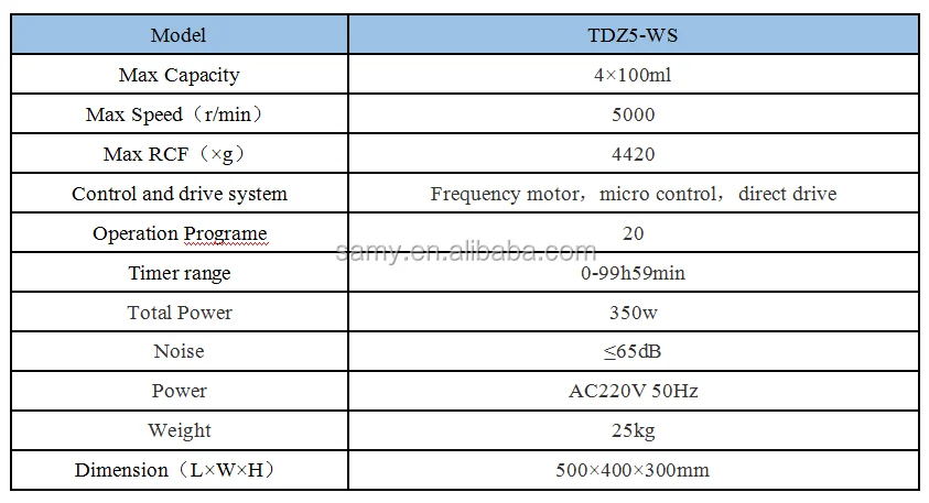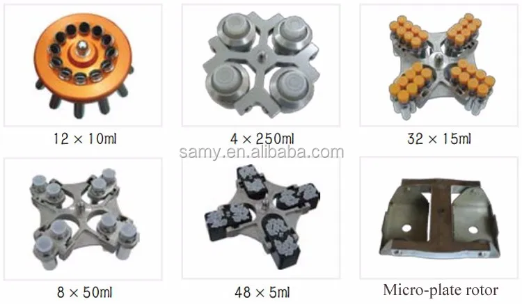 Each set of centrifuge could be equiped with different rotor, TDZ5-WS ultracentrifuge automatic cheap centrifuge machine could be equiped with 12x10ml, 24x10ml, 16x15ml, 4x50ml, 4x100ml .