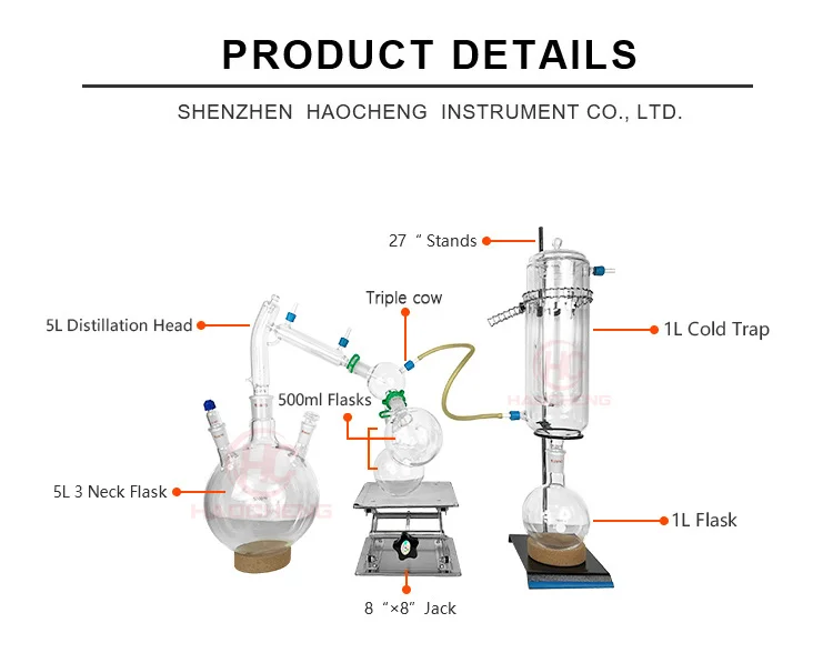 Haocheng popular 5L laboratory vacuum short path distillation glassware
