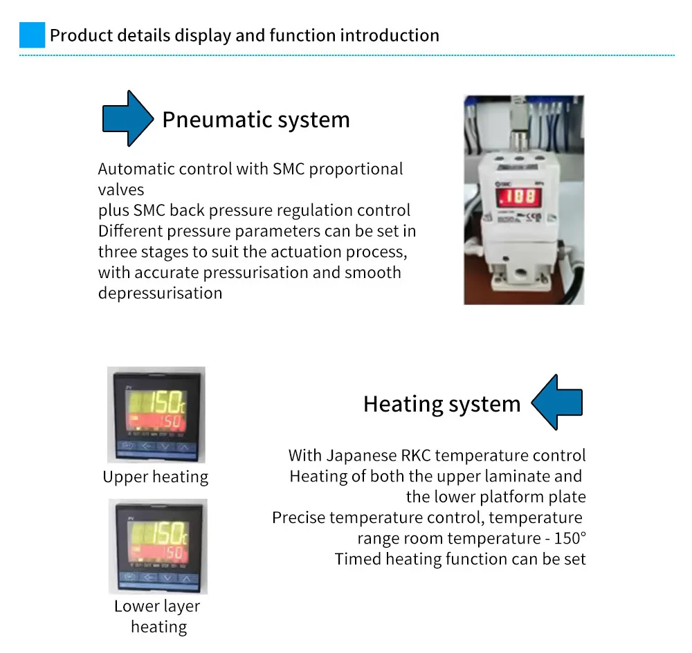 SCA, COF, and other hot-melt adhesive vacuum lamination and hot-press lamination, SCA/OCF and other hot-melt adhesive processes for medium and large size G+G and full lamination; Large-size vacuum laminating machine is specially used for laminating large-size hard-to-hard (G+G) hot-melt adhesives. This machine has the function of pressurizing and heating in a vacuum state, and is suitable for OCA.OCF.TPF and large.COF .Medium and large size G+G full lamination in SCA and other hot melt adhesive processes, OCA process G+G lamination, suitable for naked eye 3D and TP/LCM full lamination of various sizes